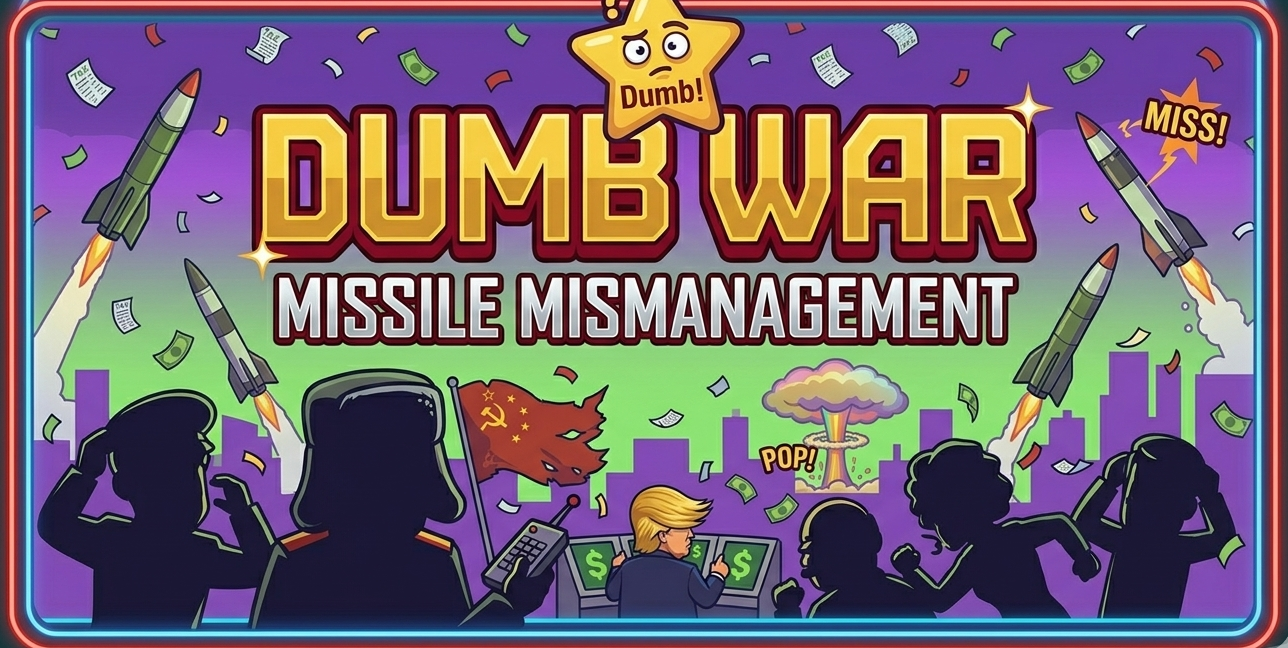 Dumb War is a turn-based strategy game where world leaders are as incompetent as they are powerful. Command one of eight global factions, launch strikes at your rivals' cities, and watch your carefully laid plans go hilariously wrong. It's geopolitics — but dumb.